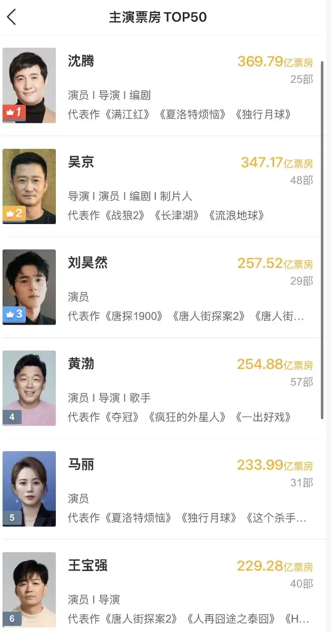 排在主演票房榜单的第二名,也就沈腾梗概和他一战了。