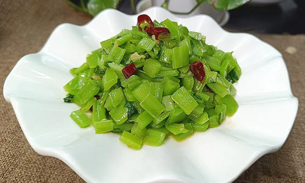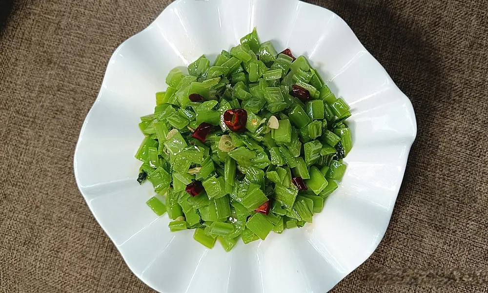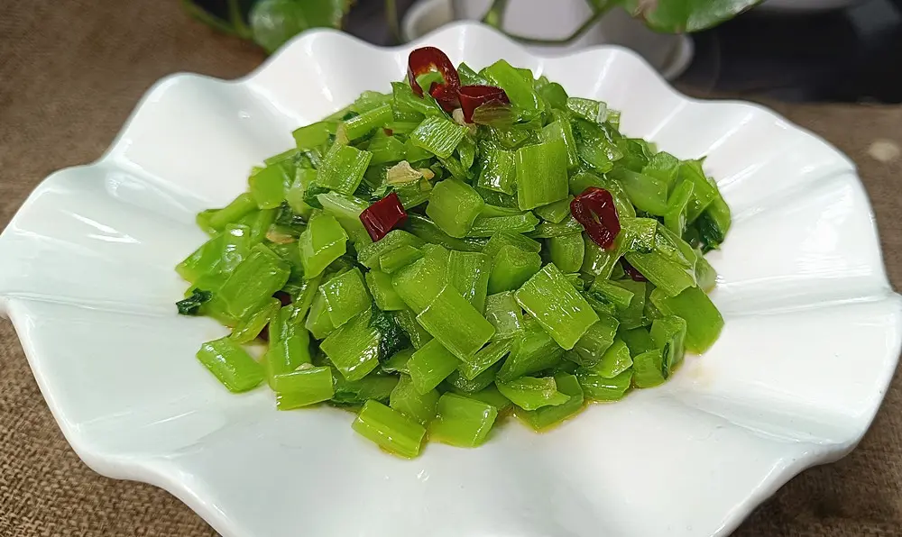 (1)制作这谈菜要采选清新的,稍稍嫩一丝的青菜叶子,况兼只须杆。