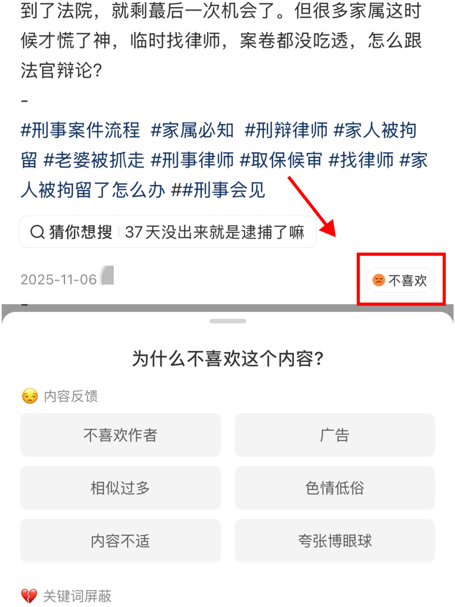 但站在用户角度,这个“不可爱”选项更像是用户告诉平台我方的好奇偏好,以便平台精确推选其他帖子,而非用户向平台举报——因为平台不提供贬责戒指响应。