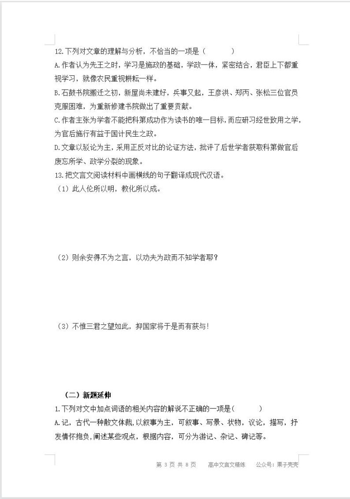 亚搏 高汉文言文大要纪行文之衡州新学记