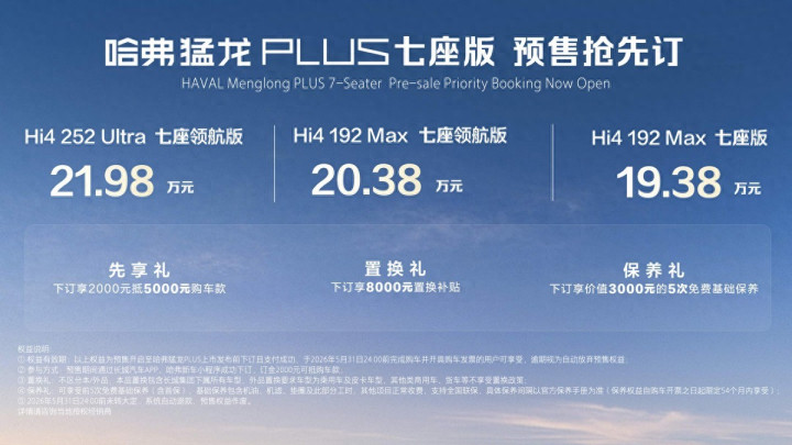 哈弗猛龙PLUS Hi4 192 Max 七座版 19.38万元