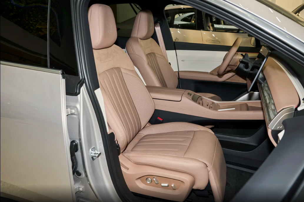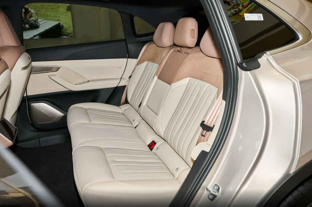 尺寸方面,新车的长宽高分辩为4828/1930/1616mm,轴距为2950mm与同级别热点车型特斯拉Model Y比较,除车身高度稍低外,其他尺寸数据均更具上风,出色的轴距,为车内带来了极为辽阔的空间。即使三个身高 1米8的成年东谈主坐在后排,腿膝部空间也能达到160mm,头部有用空间达1010mm,舒律例有很好的保险。