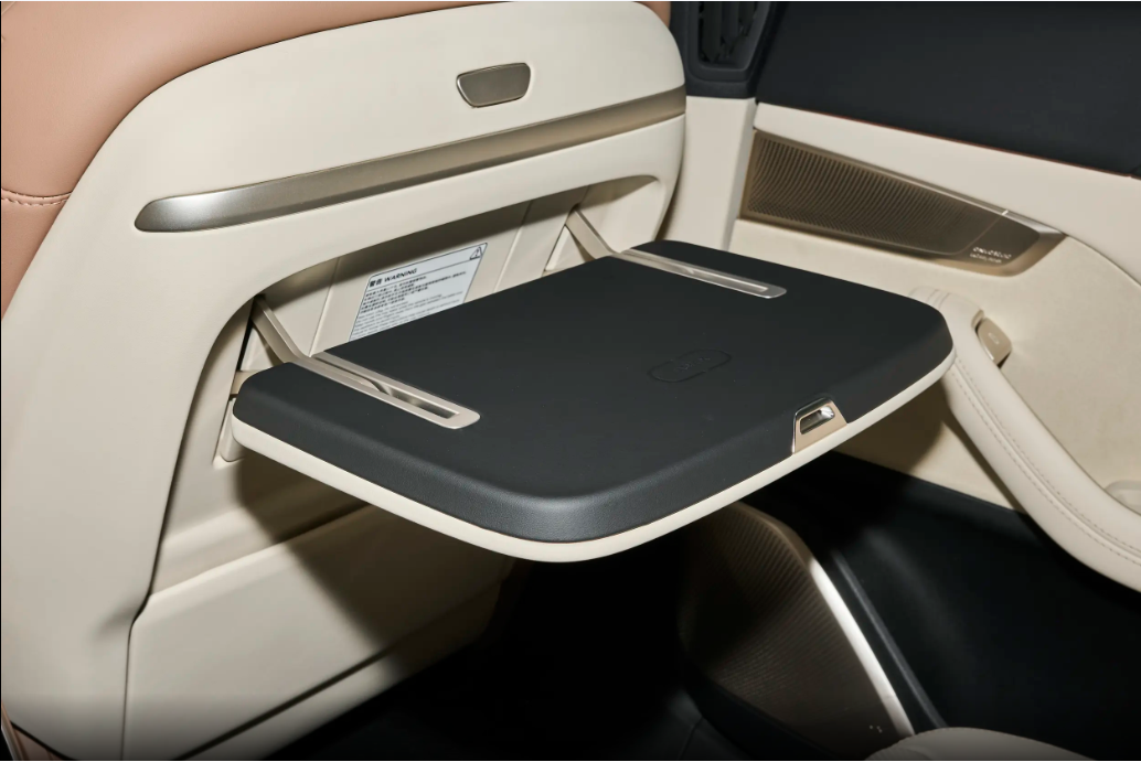 第二排还提供了小桌板为后排乘客带来了一定的便利性,而且后排中间的8英寸文娱屏更是“带娃神器”。之前跑远程,孩子总在后排闹着要玩手机,当今只须连上车载WiFi,放个动画片或者童谣,孩子能安安静静看一谈。