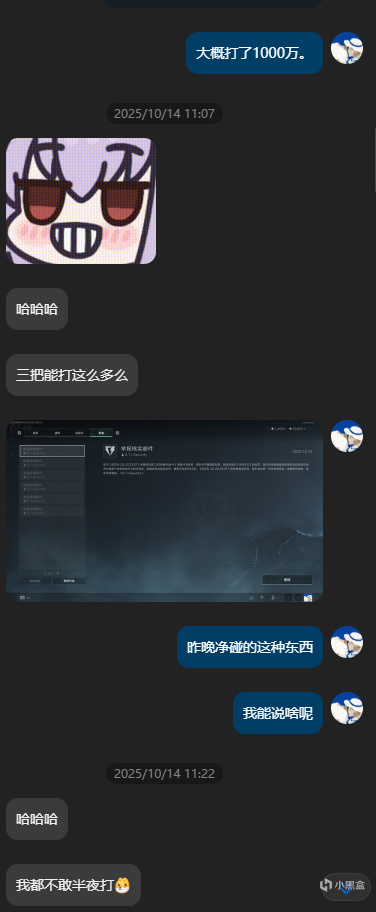 前两天思跟一又友扫数猛攻几局发现根柢起不起装备,只好临时去“借”(懂得齐懂)了一个账号,打了两局一又友顶不住“战损”扫数改打cs2去了。还号的时候,号主还讶异的问我是怎么玩的为什么三局能打掉了1000W。