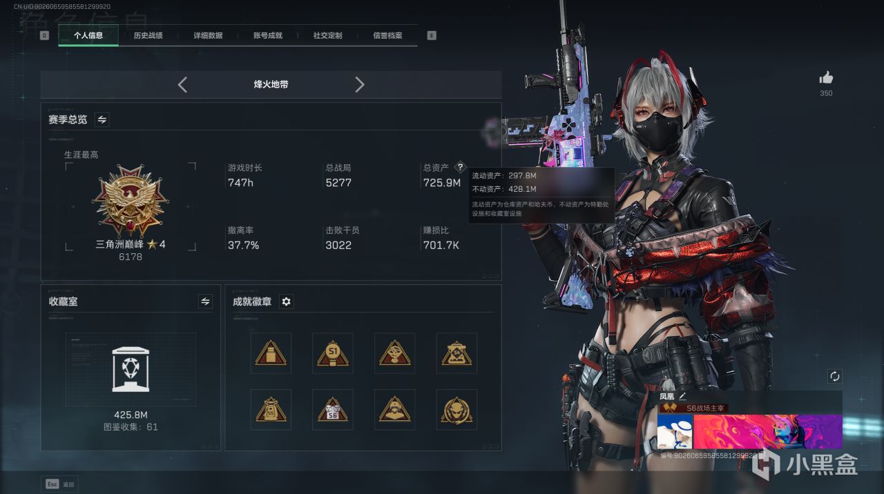 楼主双子测试时入坑三角洲,主PC。从上线以来一直保抓着每月大约6~80小时的游戏时长,总游戏时长大约1000小时傍边。