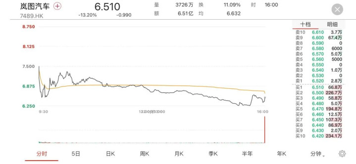 而一年后,在2022年9月IPO的零跑汽车在港交所上市首日破发,一度跌近40%,最终下落36.88%。这个时候新动力汽车在老本阛阓也曾不太受到待见了,何况零跑上市的时候还处于亏空之中。因此其破发也在料思之中。而岚图汽车在港股上市,天然通过转先容表情快速上市,并不触及融资,但是这种花式也对其阛阓来回有一些影响。