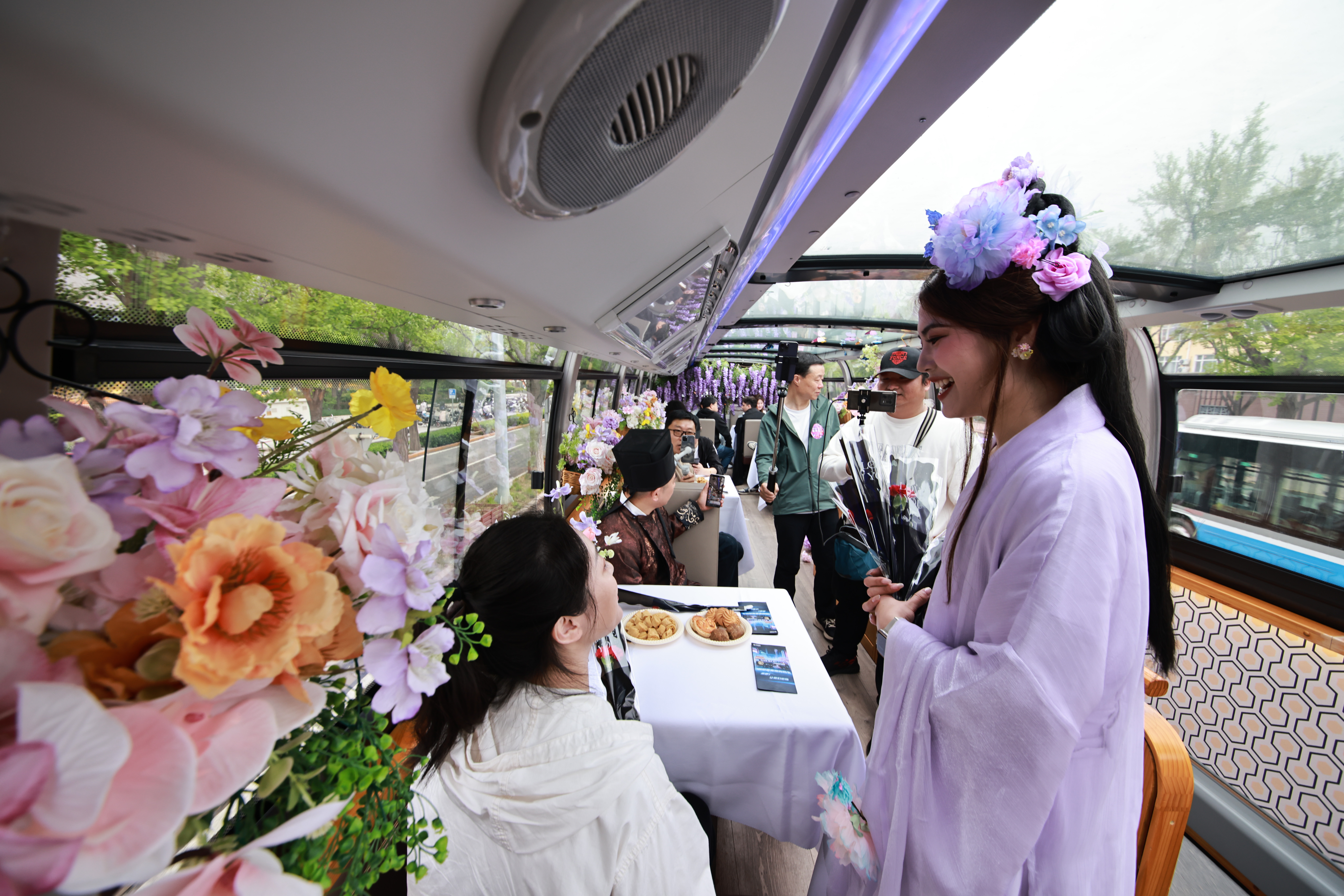 新华大街上,“花漾巴士”似锦点缀、作风娴雅,宛如流动的春日画舫穿行于城市街巷,通盘春光随行、景致宜东说念主,市民搭客纷纷驻足不雅赏、拍照贪恋,让城市副中心的大街弄堂处处飘溢着温馨猖厥的春日氛围。