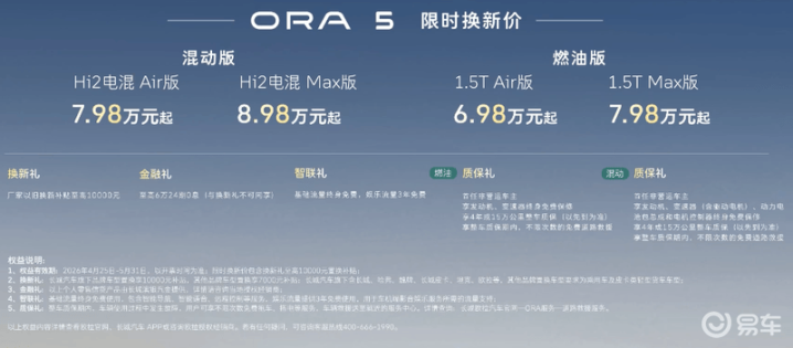 易车讯在当天开幕的北京车展上,长城欧拉5燃油版及混动版车型顾惜上市,其中混动版推出2款车型,售价8.98-9.98万元,限时换新价7.98-8.98万元;燃油版推出2款车型,售价7.98-8.98万元,限时换新价6.98-7.98万元;此外,欧拉5还推出侯明昊戒指版,共推出燃油、混动、纯电三种能源体式的3款车型,售价8.98-13.38万元。欧拉5布局了HEV、BEV、ICE三种能源体式,纯电版块此前依然上市,亚博体育燃油版及混动版车型的补充将进一步丰富阔绰者弃取空间。