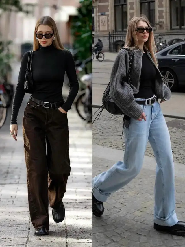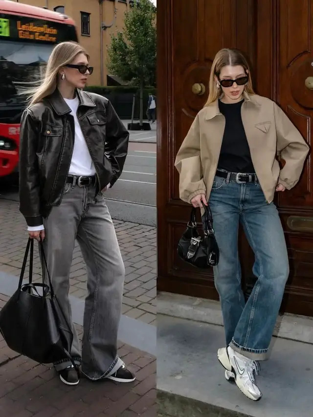 当我们的穿衣立场偏酷飒风,不妨可选玄色的皮鞋配上蓝色牛仔直筒裤,再加上玄色的皮衣外衣和玄色真挚衫,戴上墨镜,走起路来自带风。