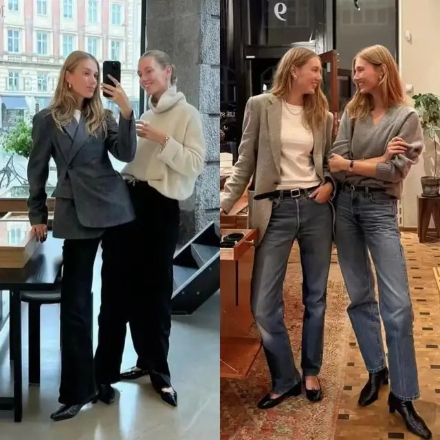 Tips①:尖头低跟单鞋 VS 东说念主字拖
