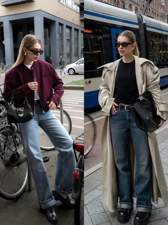 或是袭取圆头乐福鞋,配上牛仔直筒裤和卡其色风衣外衣,呈现成果又飒又好意思又抢眼,场合的城市气温稍低,可选这种厚底的乐福鞋。