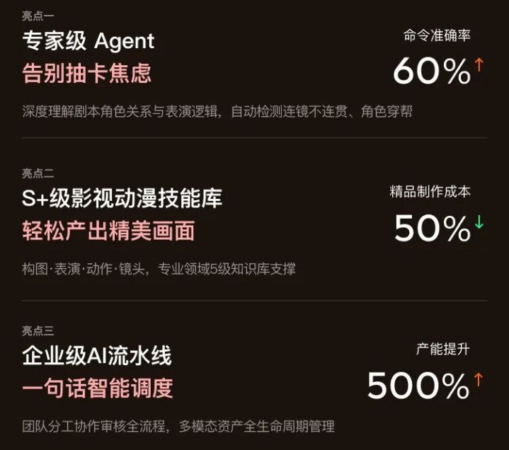 这一机制径直达成了创作历程从“过后修正”到“预先防护”的改革。数据骄矜,依托各人级Agent的脚本息争本领,漫剧创作中提醒准确率的擢升幅度能达到60%,返工率也从50%傍边降至10%以内。这意味着团队排查、树立AI初级罪过的时辰大幅缩减,返工不再成为创作过程中的常态化内讧。