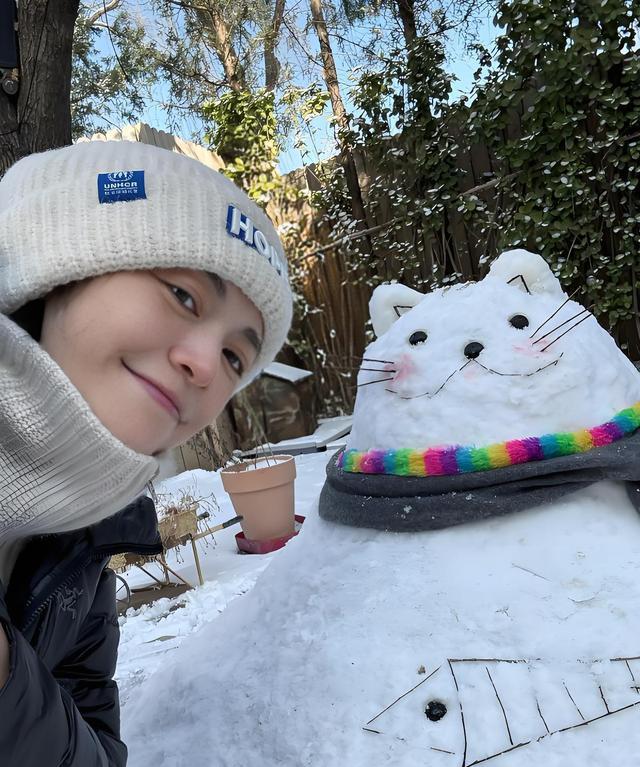 雪一下,北京顺义那块地界蓦的怡然得像被谁按了静音键。姚晨牵着土豆外出时,子母俩的脚印还没来得及排好队,就被一阵快门声截胡——相机在土豆手里,镜头瞄准的却不是姆妈,而是那只刚被定名为“八顿”的雪猫。